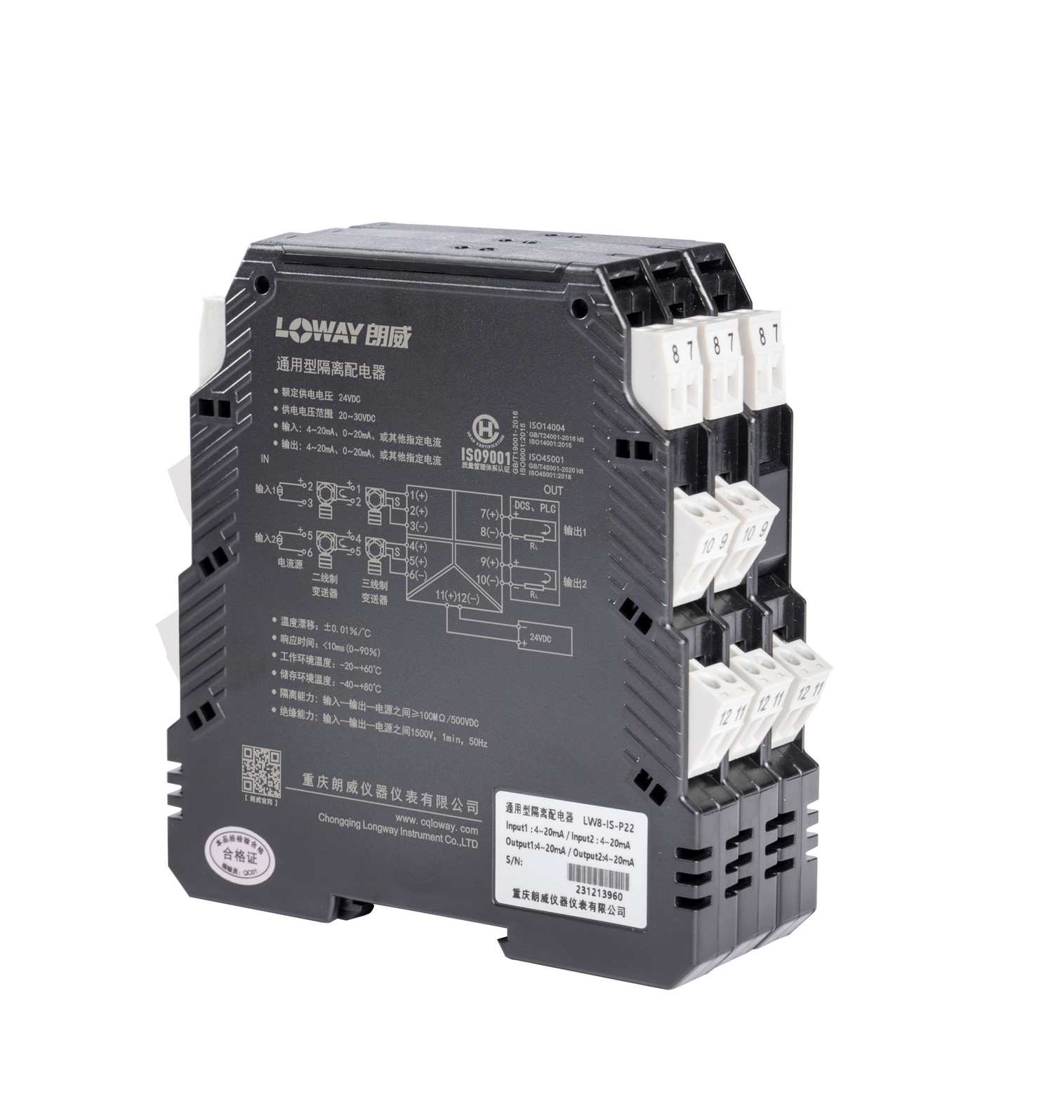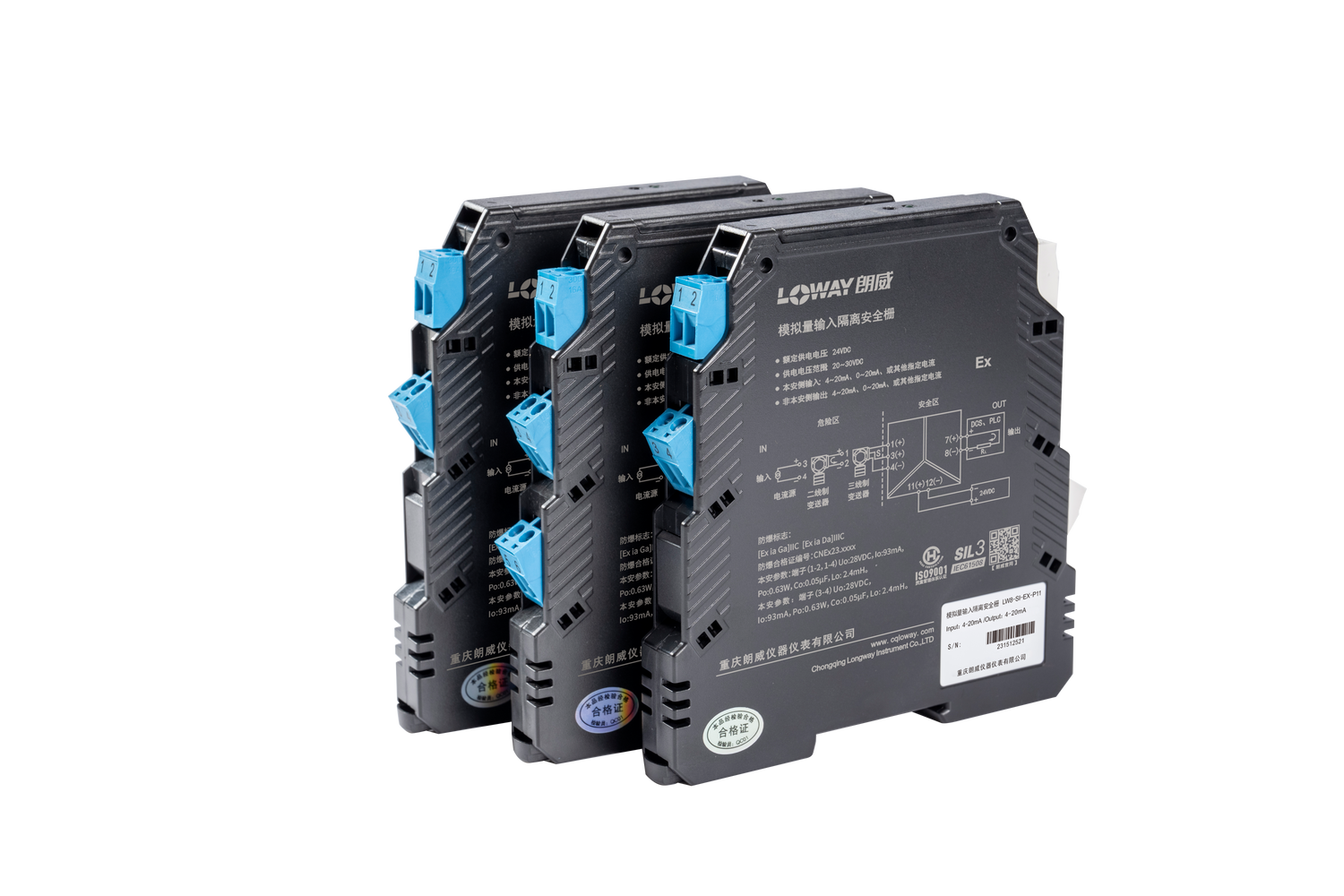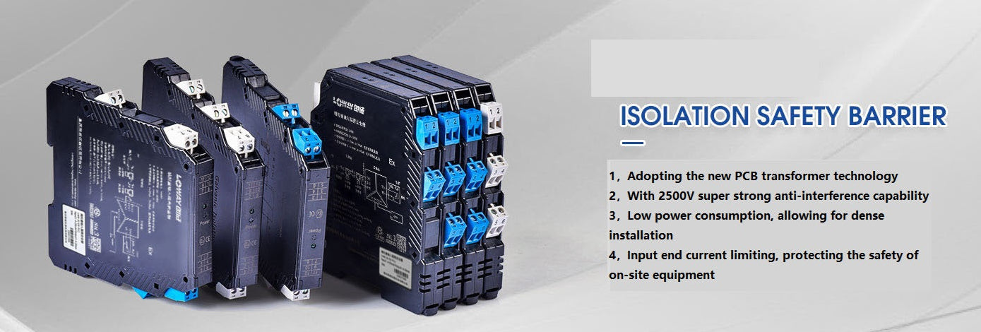 - Analog output Isolated Barrier:This product is compatible with DCS/PLC and other control system or unit combination instruments for 4-20mA current input and 4-20mA current output type isolation safety barrier. It accepts the current signals (4-20mA) output from the DCS/PLC system or other control sources in the safety zone and transmits them through this isolation safety barrier. Then, it outputs 4-20mA signals to drive the actuators, display instruments, etc. in the hazardous areas. This isolation safety barrier adopts independent power supply, and the input, output and power supply are mutually isolated.